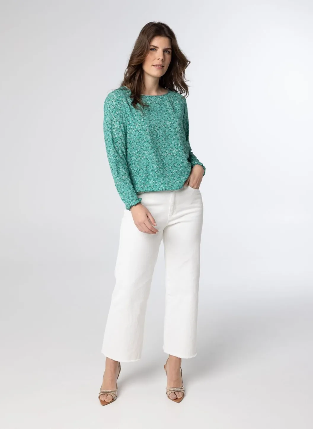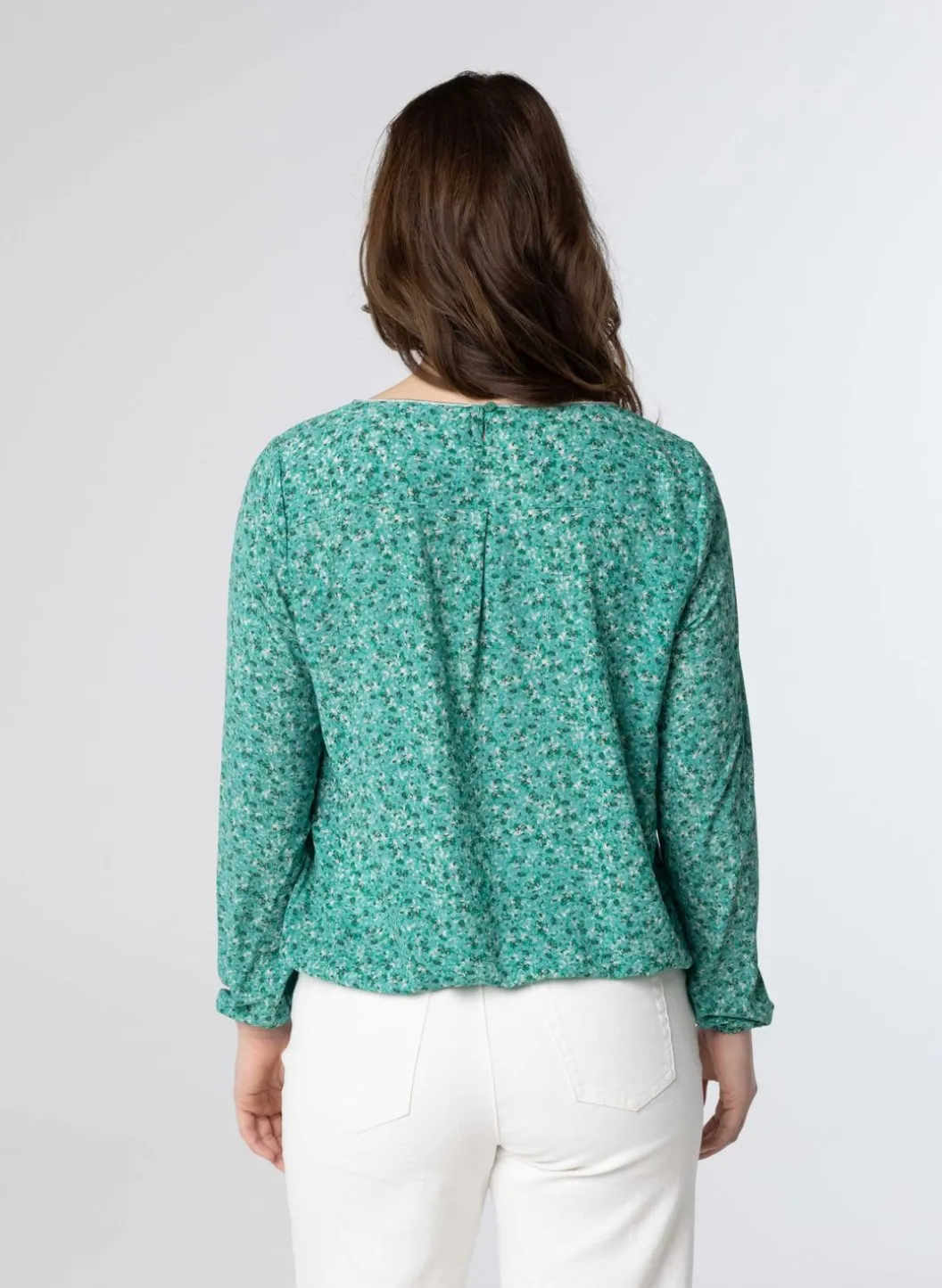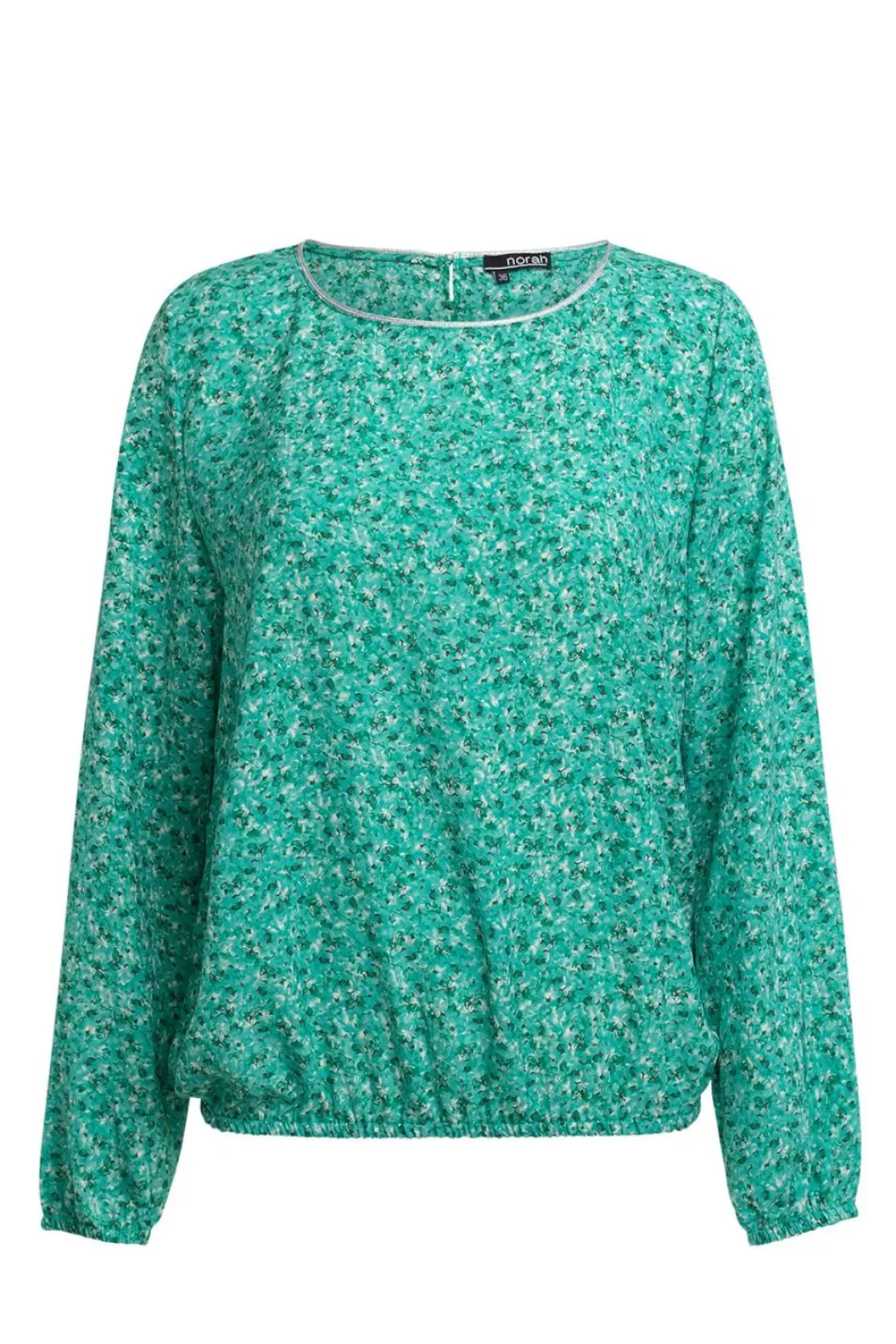 Een Fleurige Groene Blouse Met Een Levendige Bloemenprint, Die Doet Denken Aan De Kleurrijke Bloemenvelden In De Lente. De Blouse Heeft Elegante Lange Pofmouwen Die Een Vleugje Speelsheid Toevoegen Aan Het Geheel. De Ronde Halslijn Is Verfraaid Met Gouden Details, Waardoor De Blouse Een Vleugje Glamour Krijgt. De Onderzijde Van De Blouse Is Subtiel Afgewerkt Met Een Elastische Band, Waardoor Er Een Mooi Blousend Effect Ontstaat En De Blouse Perfect Valt. Een Prachtig Kledingstuk Dat Je Outfit Direct Opfleurt En Je Een Stijlvolle En Vrouwelijke Uitstraling Geeft.