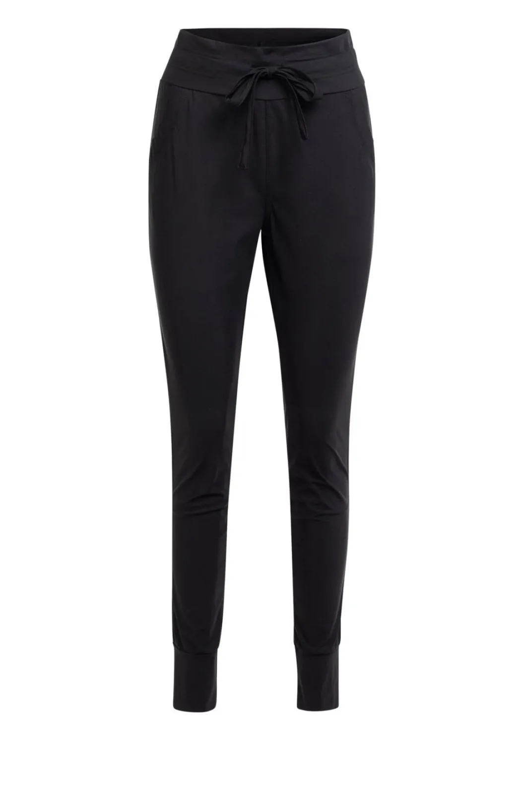 Deze Zwarte Broek Gaat Nooit Meer Uit! Door De Stretch En Elastische Band Vormt De Broek Naar Jouw Lichaam. In De Elastische Band Zit Een Koord Waarmee De Broek Gesloten Kan Worden. De Broek Heeft Twee Paspel-Sierzakken Achter En Twee Zijzakken. Onderaan De Pijpen Is Een Band Van Ongeveer 6 Centimeter. Deze Zwarte Broek Van Travelstof Is Comfortabel En Goed Te Combineren Met De Tops Uit Onze Collectie. Ook Is De Broek Te Combineren Met Het Bijpassende Shirt. Maak De Co-Ord Set Compleet Met Het Shirt.