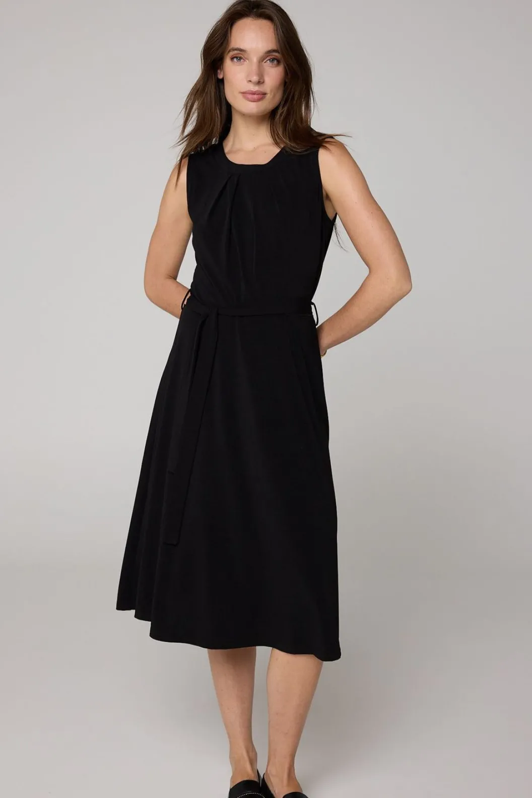 Midi Jurk Met Plooien In De Halslijn En Een Ceintuur.