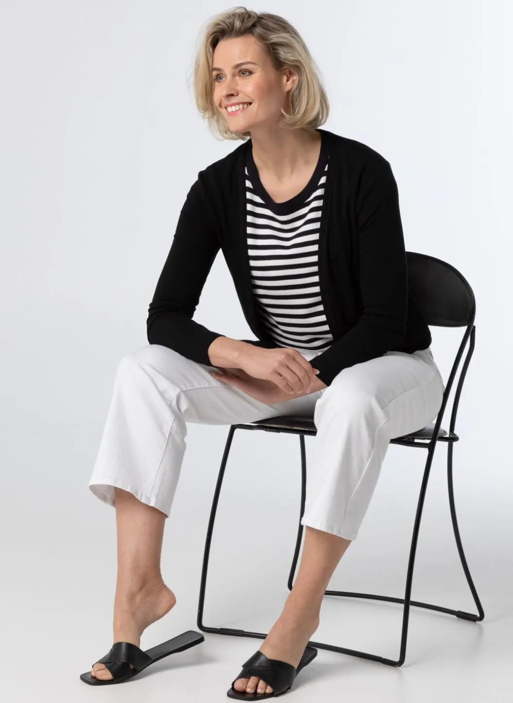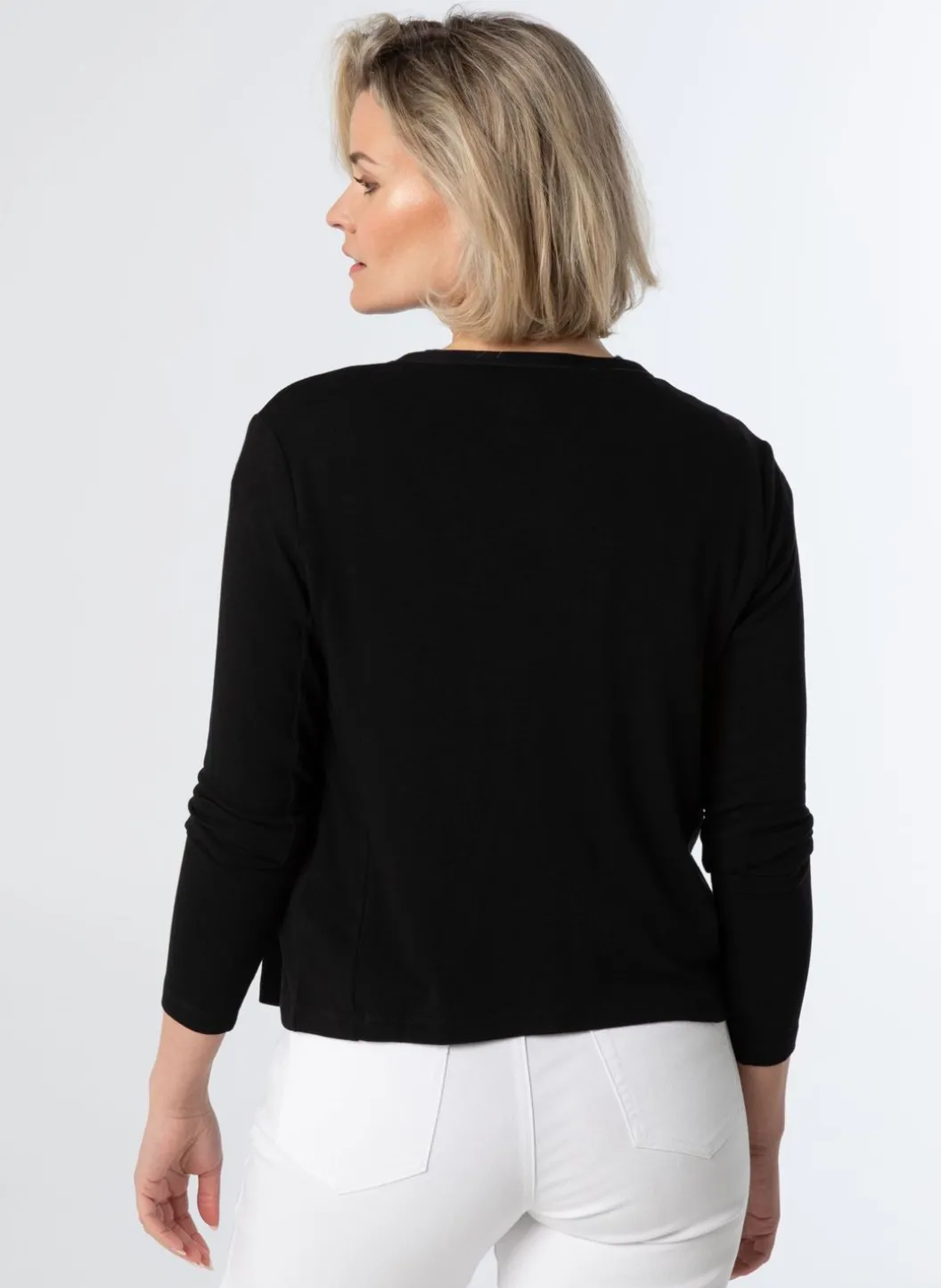 Vest Maya Met Stretch En Lange Mouwen. Dit Vest Wordt Open Gedragen.
