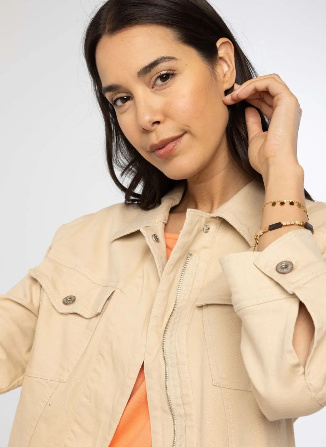 Dit Zandkleurige Spijkerjasje Heeft Een Klassieke Kraag En Blinde Ritssluiting Met Bovenaan Een Drukknoop, En Lange Mouwen Met Manchet. De Jas Heeft Twee Borstzakken En Lichte Stretch. Benieuwd Hoe Onze Stylisten Deze Jas Stylen? Kijk Op De Shop The Look Pagina.