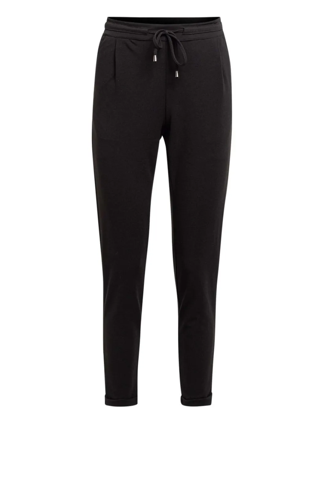 Zwarte Broek Met Stretch En Een Elastische Tailleband Met Drawstring. Deze Broek Is Voorzien Van Twee Steekzakken, Twee Paspel-Sierzakken En Omgeslagen Broekspijpen.