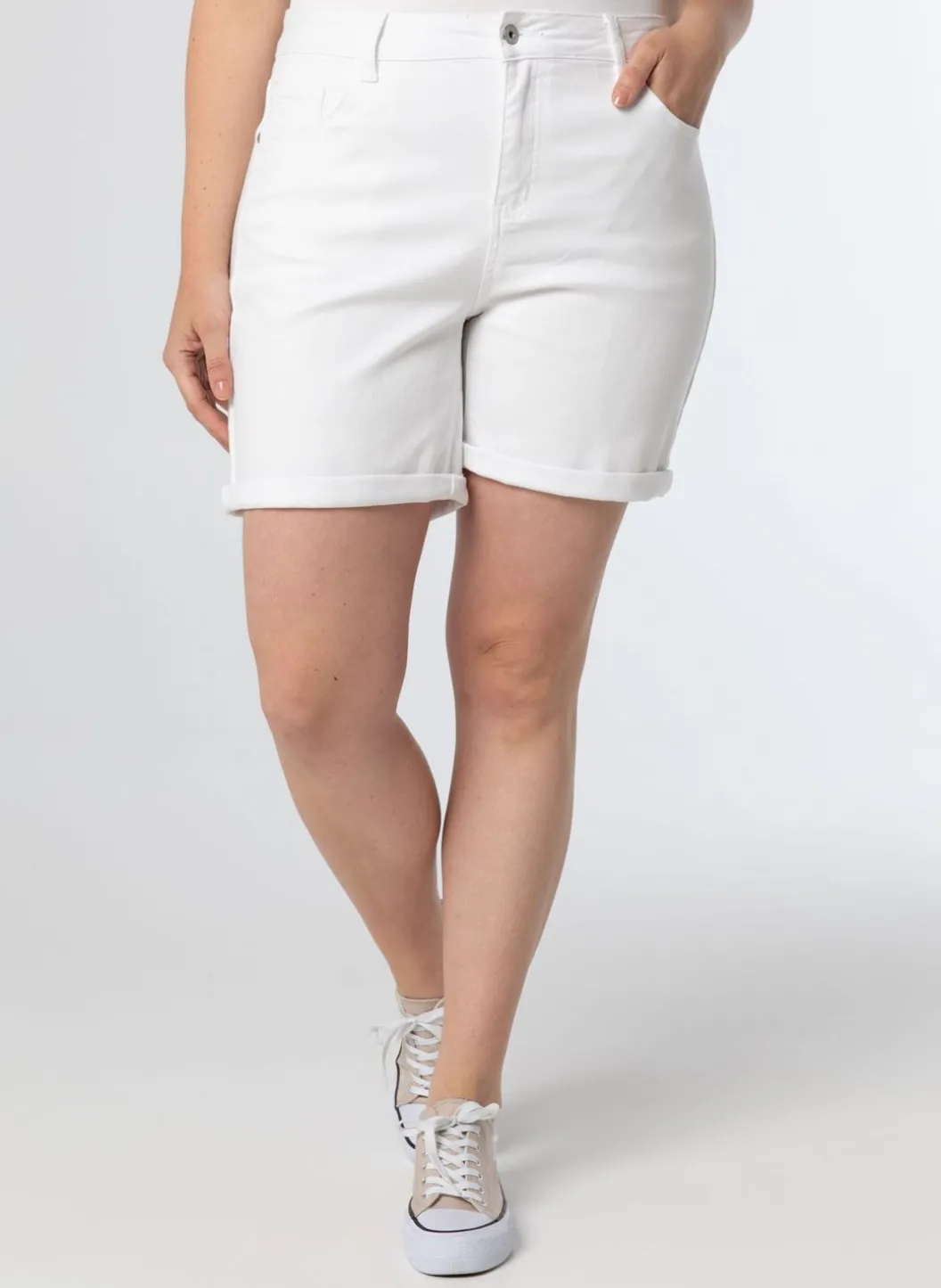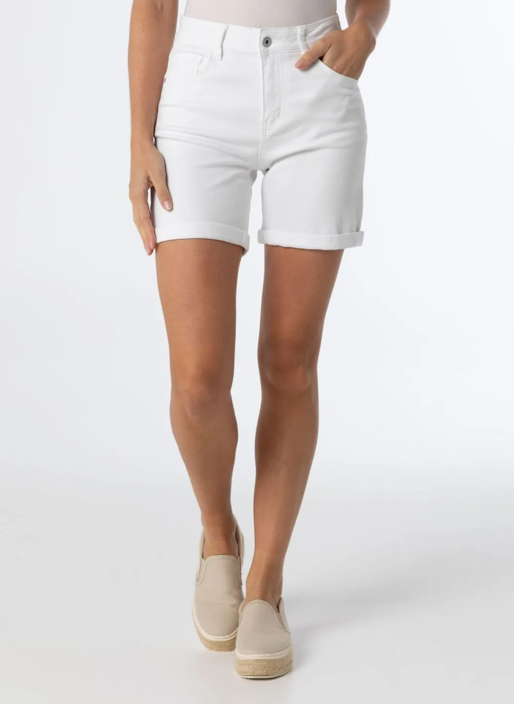 Denim Short Bibi Met Stretch. Dit 5-Pocket Model Is Voorzien Van Een Knoop- En Ritssluiting.