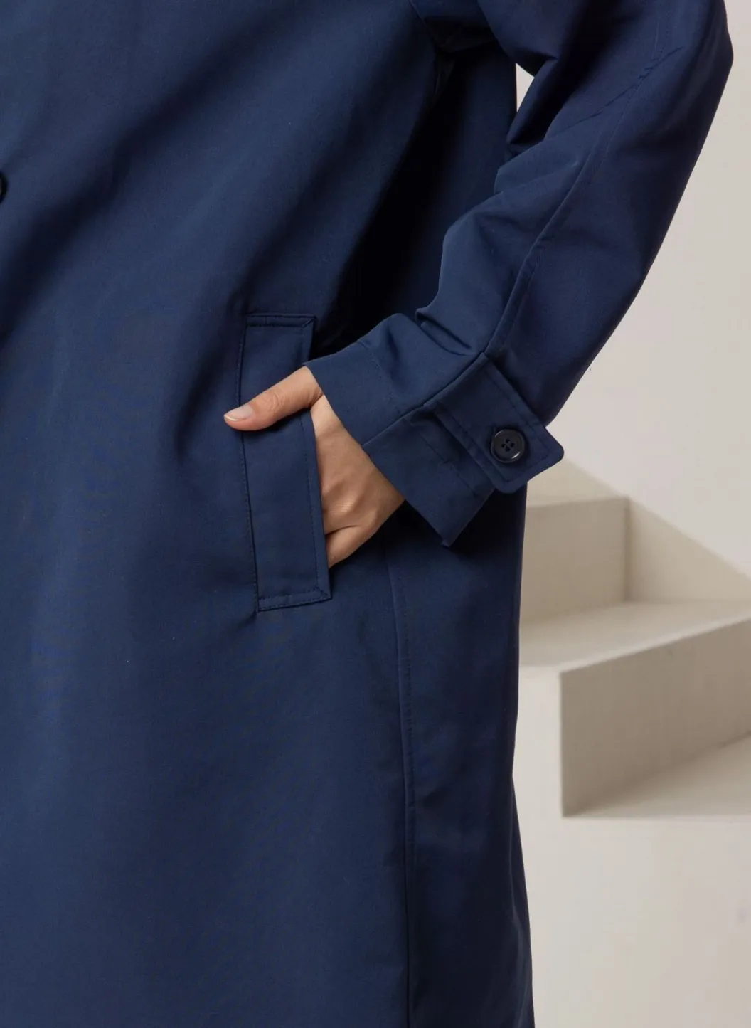 Deze Donkerblauwe Jas Is Eenvoudig Te Combineren. De Jas Heeft Een Klassieke Kraag, Twee Steekzakken, Blinde Sluiting Met Knopen En Een Split Aan De Achterkant. De Knopen Aan Beide Mouwen Bieden Je De Kans Om De Sluiting Aan Te Passen Naar Eigen Wens. De Jas Is Niet Gevoerd.
