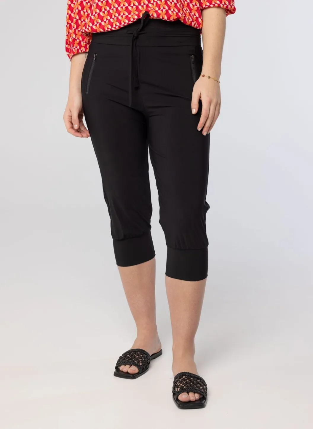 High Waist Driekwart Broek Van Travelstof Met Rits