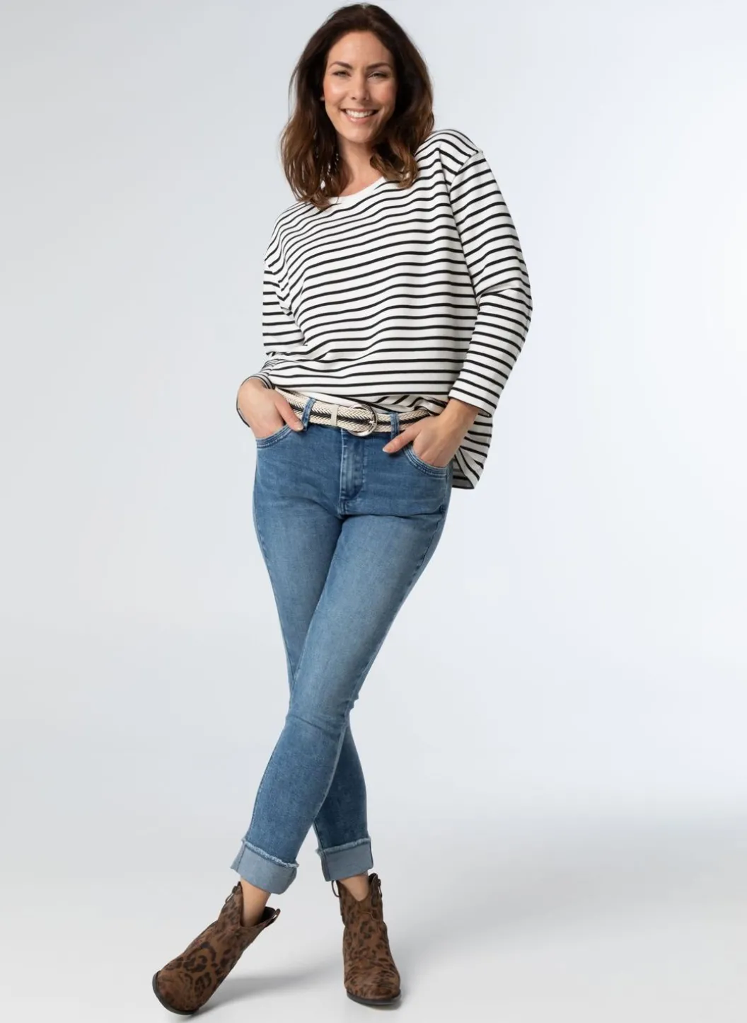 Tessa, Een Denim Spijkerbroek Met 4 Zakken En Een Strakke Pasvorm, Is Het Toppunt Van Moeiteloze Stijl. Met Zijn Enkellange Pijpen Heeft Dit Trendy Kledingstuk Rafelige En Omgeslagen Zoomlijnen, Wat Een Vleugje Stoerheid Aan Je Look Toevoegt. Perfect Voor Zowel Casual Uitjes Als Geklede Gelegenheden, Is Tessa Een Veelzijdige Garderobe Must-Have Die Moeiteloos Je Modegame Naar Een Hoger Niveau Tilt.