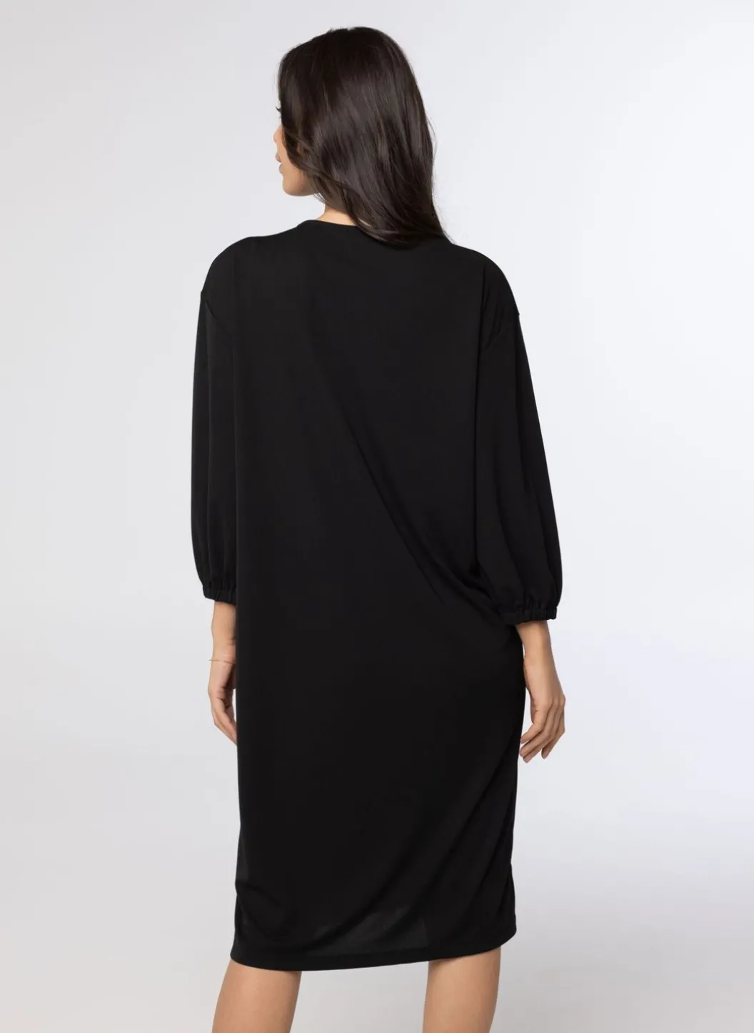 Een Black Dress Kan Niet Ontbreken In Je Kast. Deze Midi Zwarte Jurk Met V-Hals En Driekwart Mouwen Heeft Kleine Splits Aan De Onderkant. Bij De Jurk Hoort Een Ceintuur In Dezelfde Kleur En Van Hetzelfde Materiaal. De Mouwen Zijn Voorzien Van Een Elastieken Band.