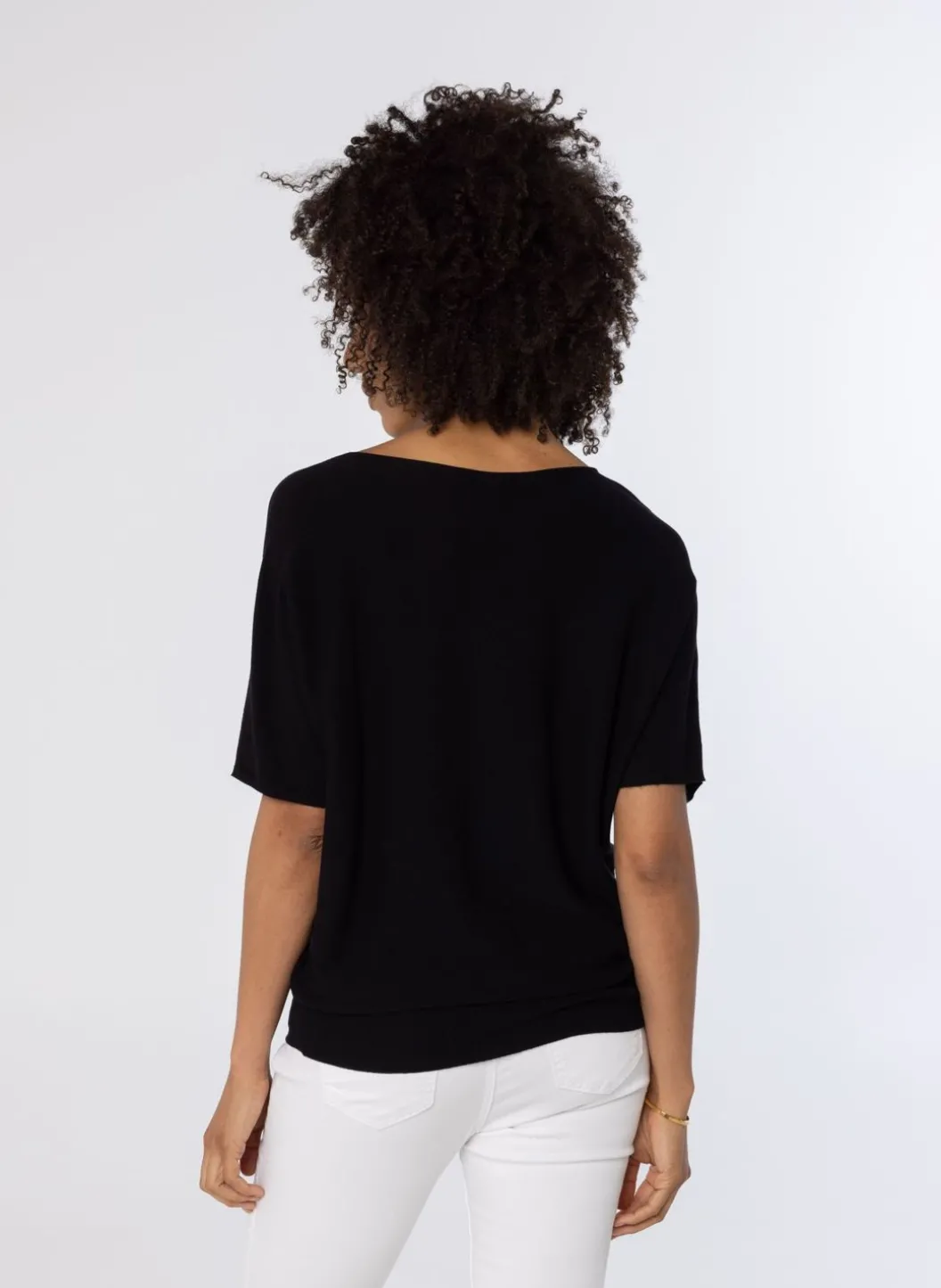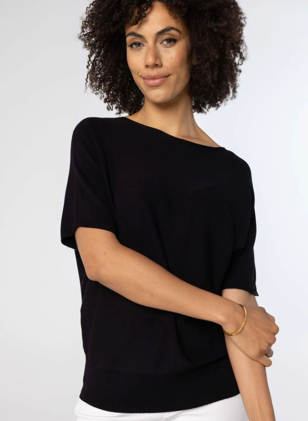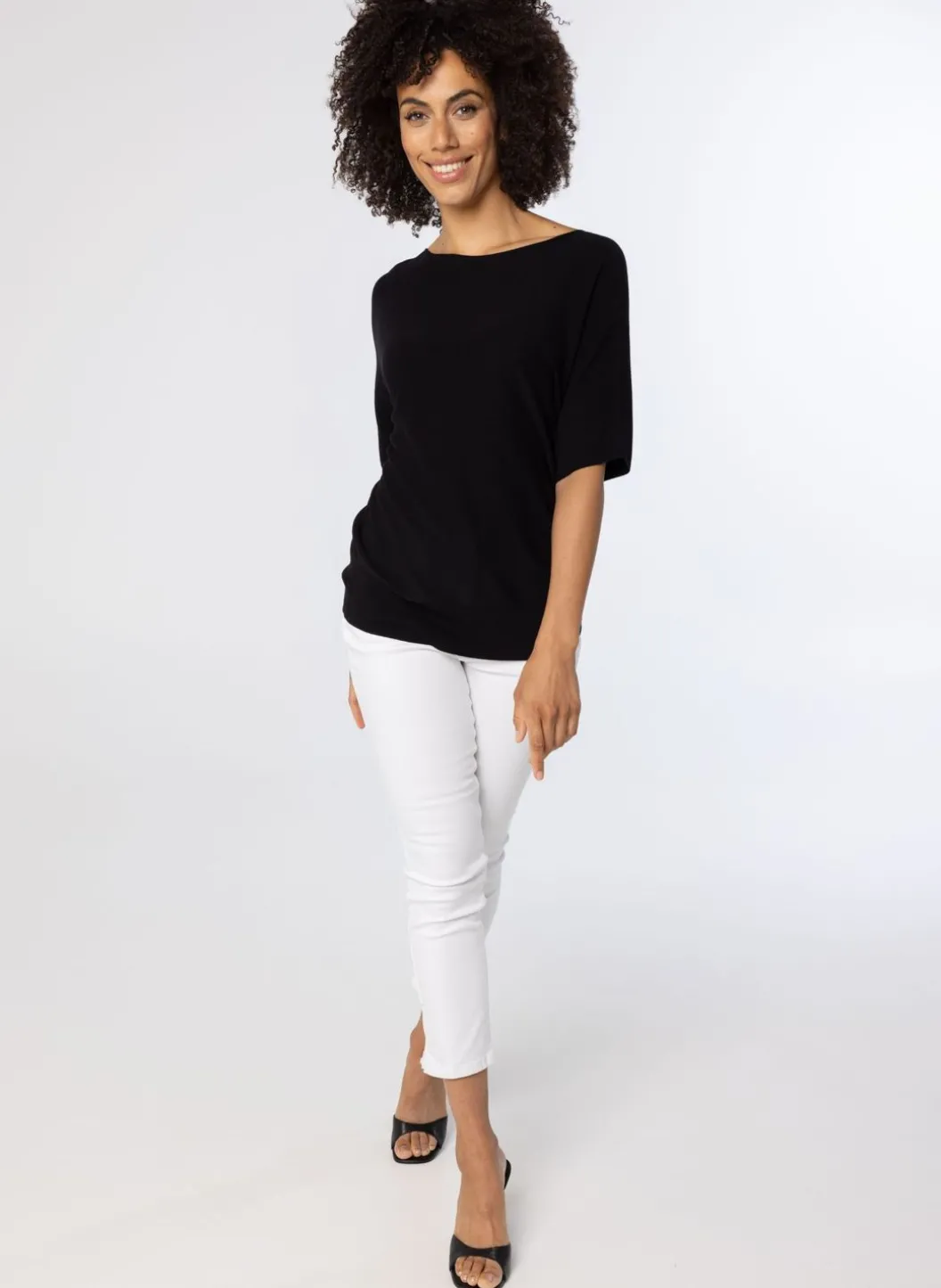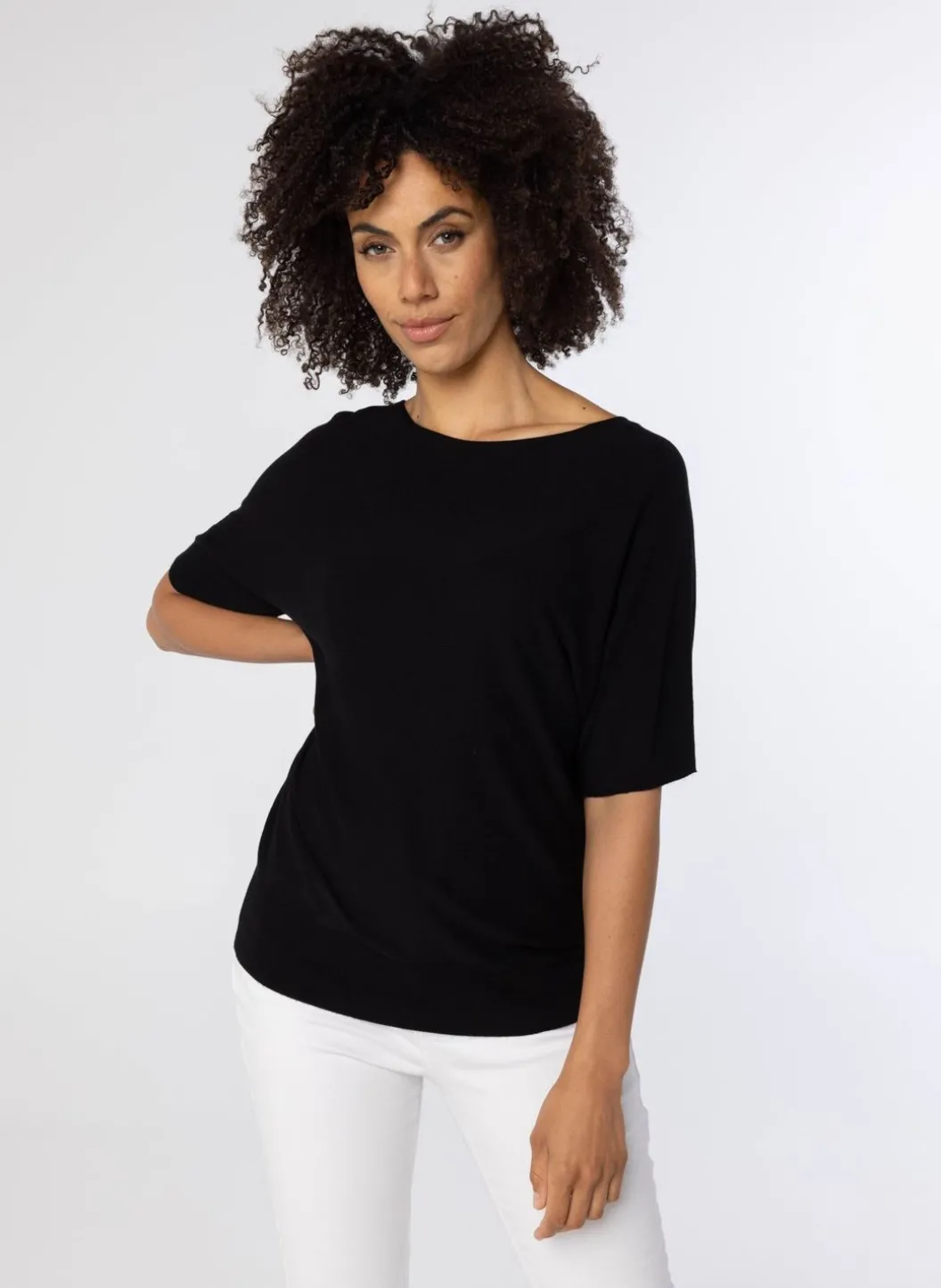 Deze Zwarte Fijngebreide Trui Met Lichte Stretch Valt Los Op Het Lichaam. De Wijde Aangeknipte Mouw En Brede Halslijn Kenmerken Deze Trui.
