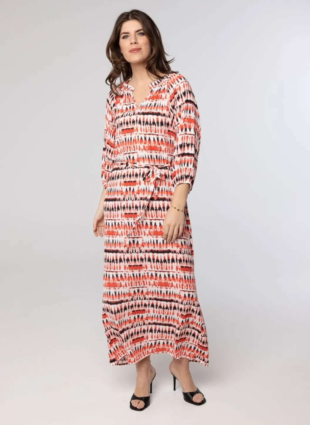 Maxi Jurk Met Ruches In De Kraag En Splits