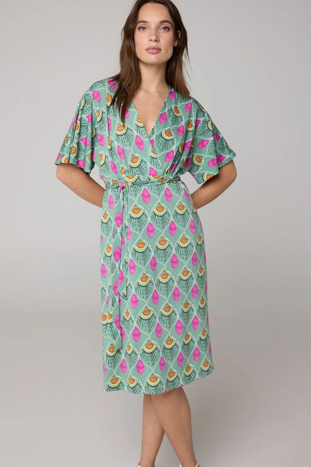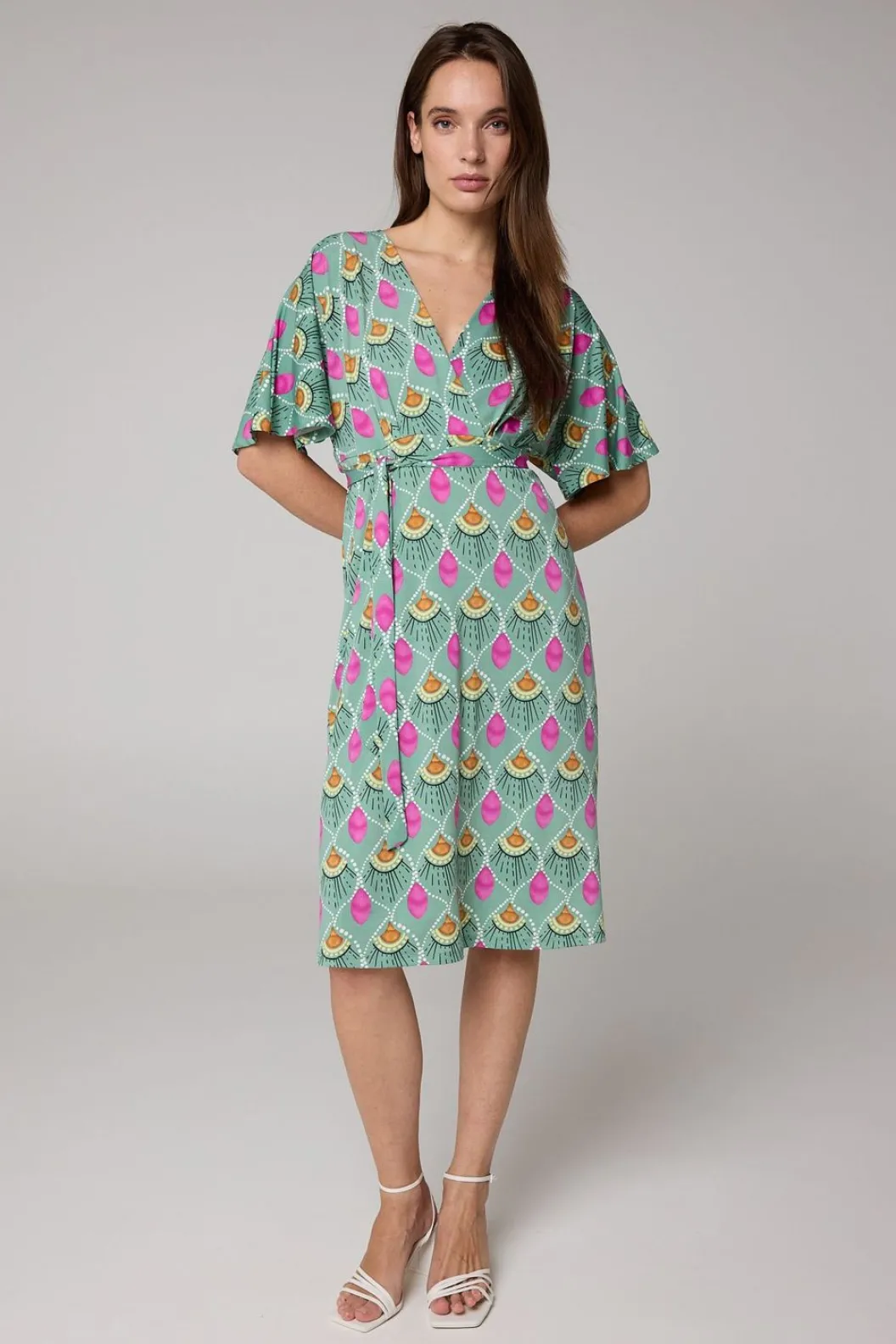 Midi Jurk Met V-Hals En Ceintuur.