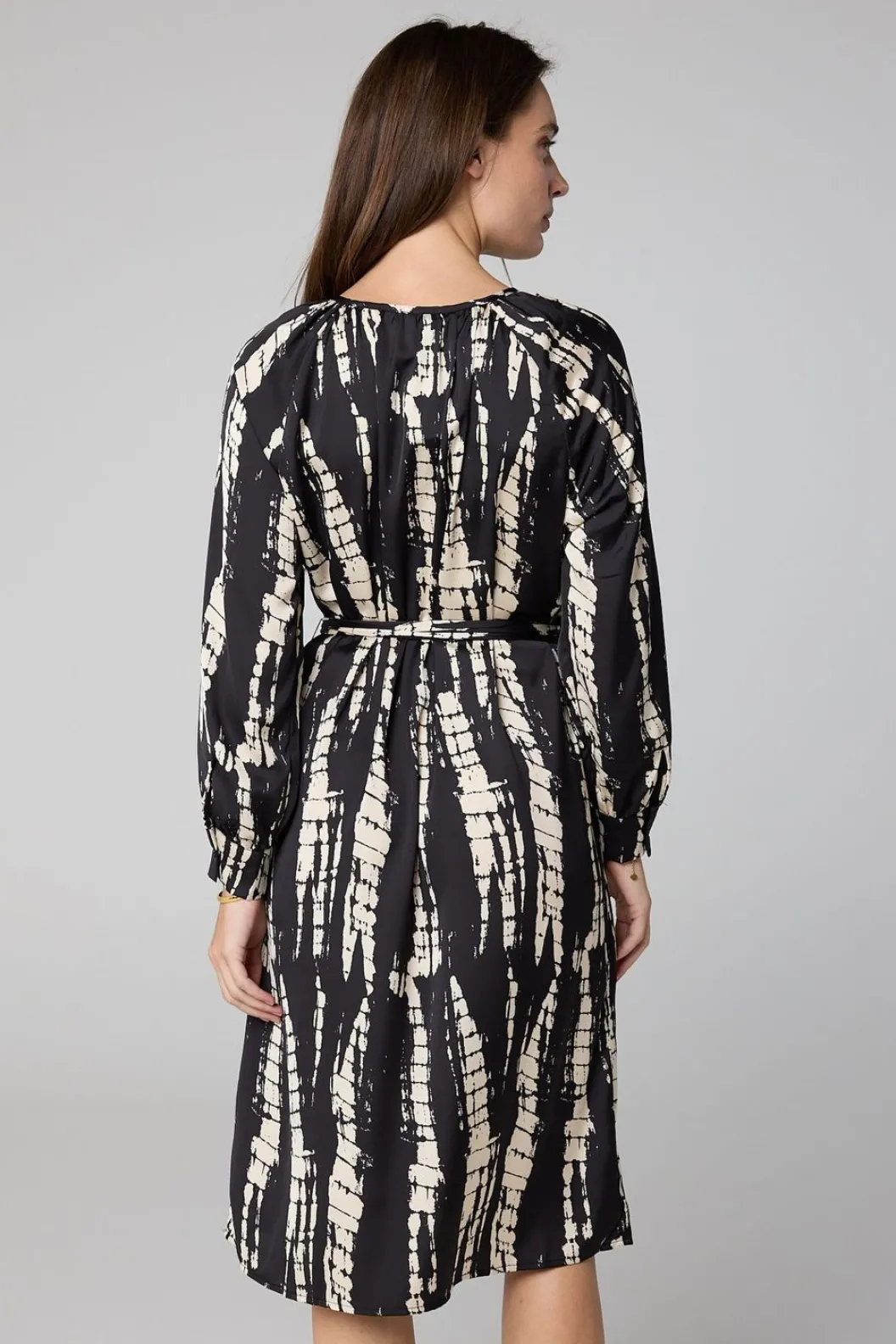 Midi Jurk Met Ceintuur En Geplooide Hals Met Knoopsluiting.