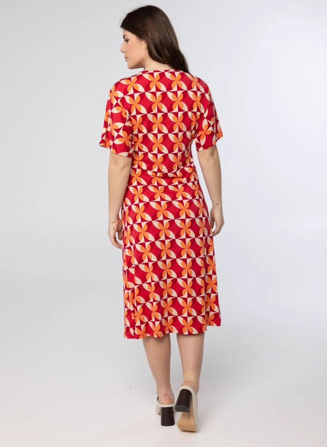 Midi Jurk Met Taillerend Knoopdetail