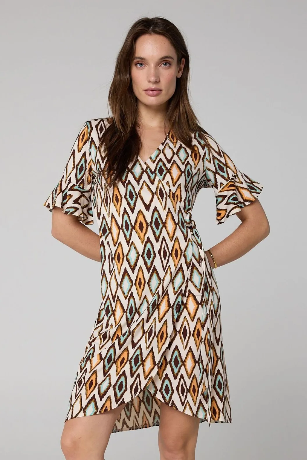 Overslagjurk Met Korte Mouwen Met Ruches.