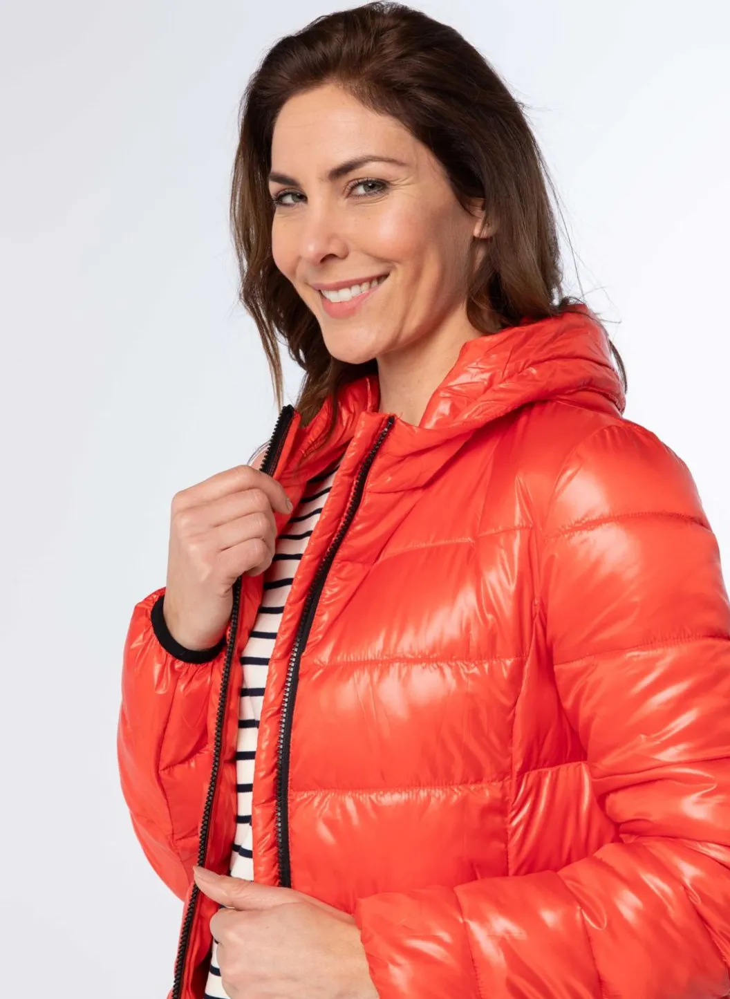 Een Prachtige Rode Korte Puffer Jacket, Gemaakt Van Een Glanzende Stof Met Lange Ballonmouwen. Deze Stijlvolle Jas Is Voorzien Van Een Comfortabele Capuchon, Een Soepele Ritssluiting En Twee Handige Zakken Met Een Ritssluiting Aan De Voorzijde. De Jas Biedt Niet Alleen Een Trendy Uitstraling, Maar Ook De Perfecte Bescherming Tegen Koude En Winderige Dagen. Een Must-Have Item Voor Iedere Fashionista Die Op Zoek Is Naar Zowel Stijl Als Functionaliteit.