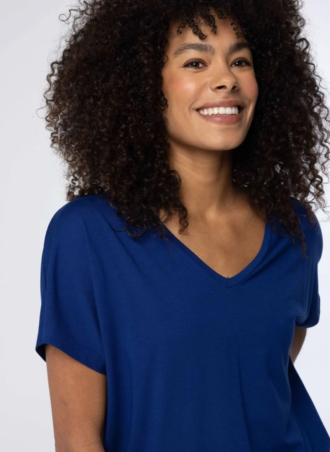 Shirt Met Stretch, Een V-Hals En Korte, Aangeknipte Mouwen.