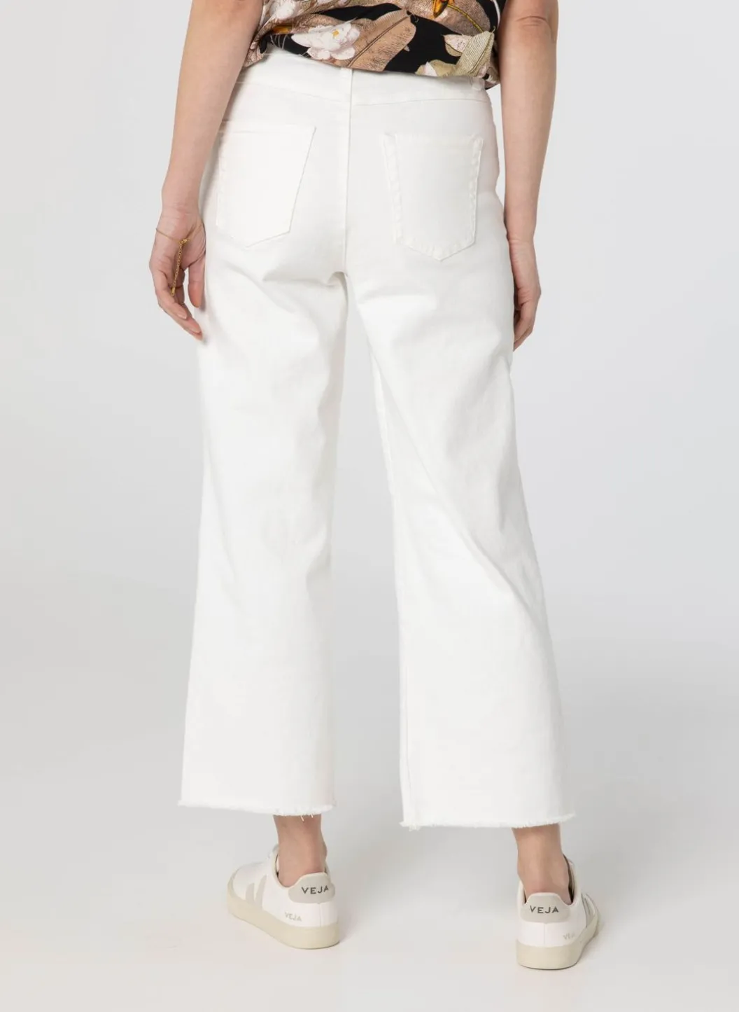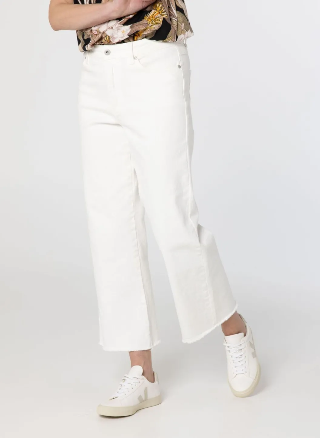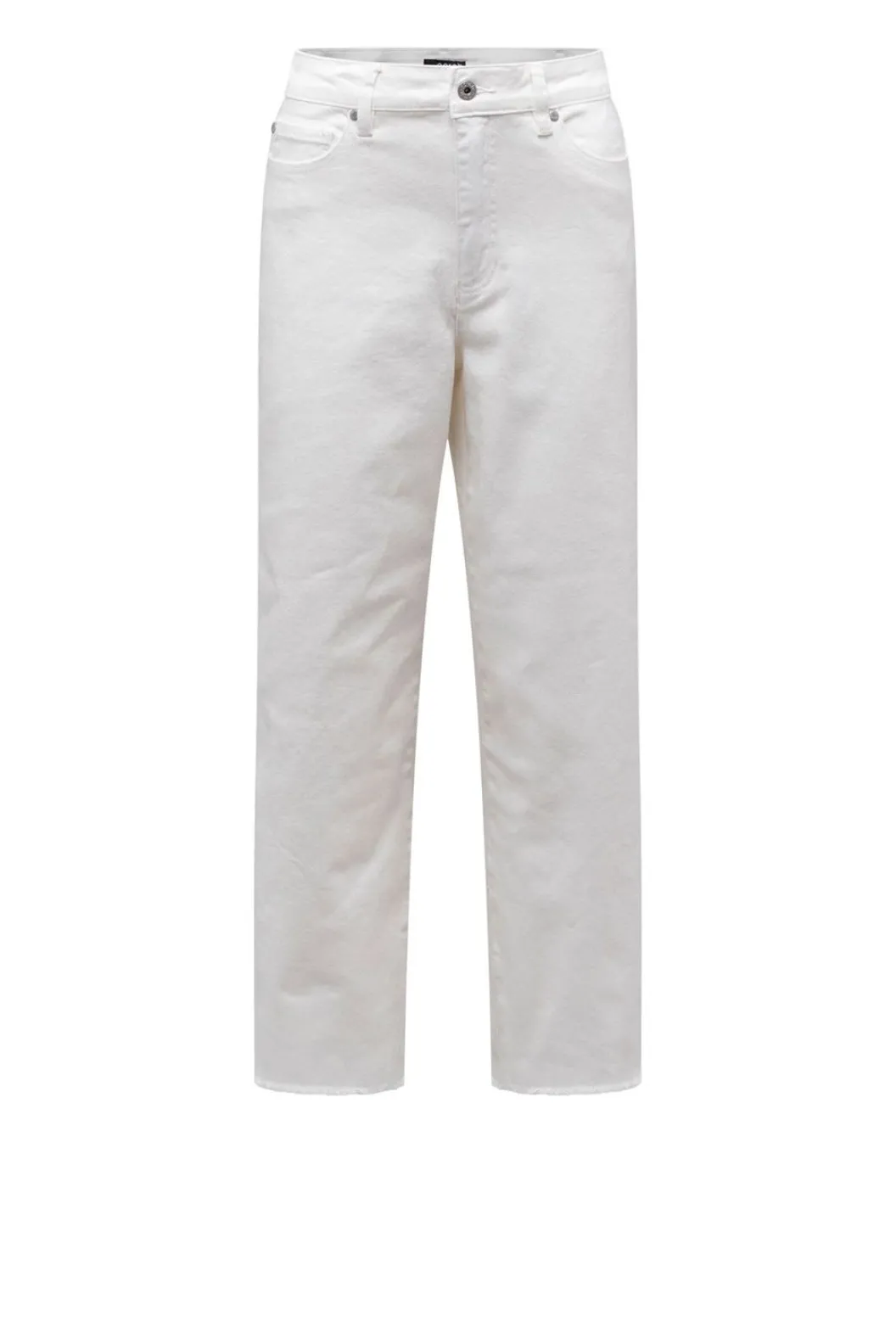 Een Effen Wide Fit 5-Pocket Spijkerbroek Gemaakt Van Een Katoenmix. De Broek Heeft Een Hoge Taille En Enkellange Onafgewerkte Broekspijpen.