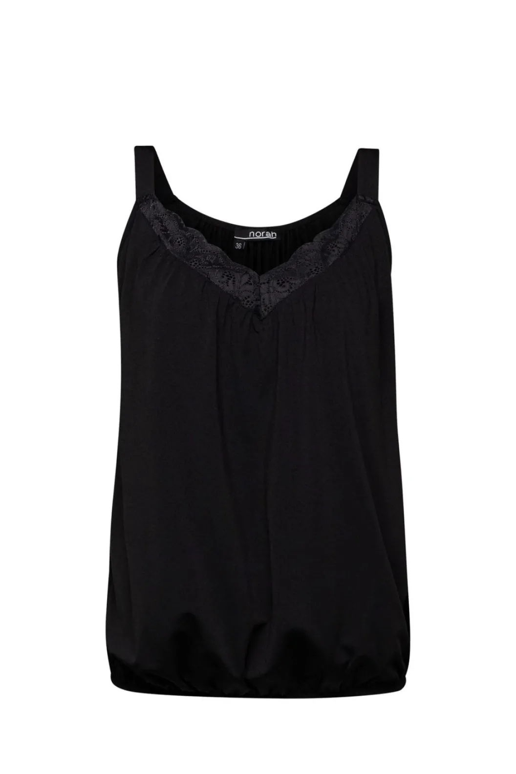 Een Mouwloze Top Gemaakt Van Soepel Tricot Met Ingestikte Plooien Aan Zowel De Voorkant Als De Achterkant. Deze Stijlvolle Top Is Versierd Met Delicate Kanten Details En Is Ontworpen Met Een Elastische Zoom, Waardoor Een Flatterend Blousend-Effect Ontstaat Bij Het Dragen. Perfect Om Een Vleugje Elegantie Toe Te Voegen Aan Elke Outfit.