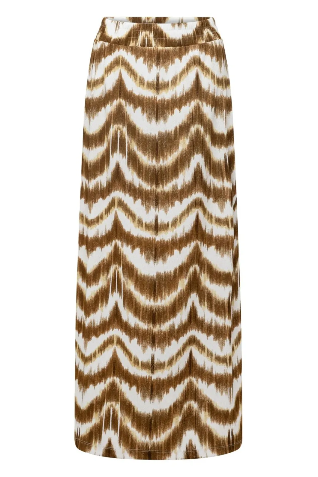 Deze Maxi Rok Met Grafische Print In De Kleuren Bruin En Wit Heeft Een Elastieken Band Op De Taille En Is Onderdeel Van Een Co-Ord Set. Maak De Set Af Met Het Shirt.